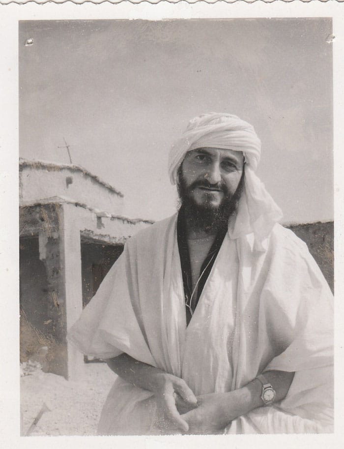 Tirage argentique d’époque au format 10,5 x 8 cm représentant l’abbé Pierre en tenue de touareg