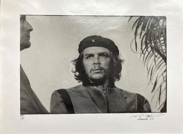 Célèbre photographie du Che Guevara immortalisé le 5 mars 1960 par le photographe cubain Alberto Korda, ce portrait charismatique du Che au regard noir et frondeur fit le tour du monde et traversa le temps. Korda nous raconte qu’une manifestation avait été organisée par Fidel Castro en hommage aux victimes du sabotage du navire français La Coubre qui mouillait en eau cubaine. Une estrade avait été montée, c’est alors qu’apparu le Che Guevara en arrière-plan de Fidel Castro qui était en compagnie de Simone de Beauvoir et de Jean-Paul Sartre. Son regard noir et intense fut saisi sur le vif par le photographe. Mais cette photo ne fut pas retenue par le journal révolutionnaire « Revolución » qui ne la publia qu’en février 1961. Sa notoriété fut acquise après la mort du révolutionnaire, le 9 octobre 1967, quand l’éditeur italien Giangiacomo Feltrinelli, qui avait acheté l’été d’avant un ensemble de photos du Che Guevara auprès de Korda, imprima le portrait sur plusieurs affiches qu’il vendit à des milliers d’exemplaires. La légende était en marche.