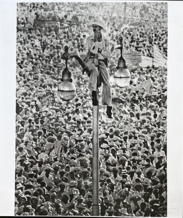 Superbe cliché réalisé lors d’un rassemblement populaire à la Havane en 1959, alors que la révolution se termine, par le célèbre photographe cubain Alberto Korda qui immortalisa le Che Guevara le 5 mars 1960 par un portrait charismatique qui fit le tour du monde « Guerrillero Heroico ».