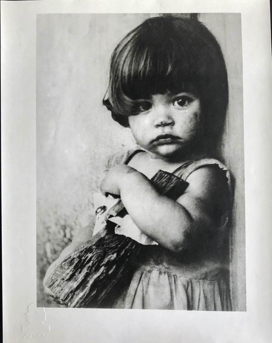Rare et beau portrait d’une petite fille cubaine serrant dans ses bras sa peluche, prise en 1960 par le célèbre photographe cubain Alberto Korda qui immortalisa le Che le 5 mars 1960, par un portrait qui fit le tour du monde « Guerrillero Heroico ». Korda dit à propos de cette photo : « Esta niña que abrazaba un leno al que llamaba « mi nene » me convencio que debia consignar mi trabajo a una revolucion que transformara esos desiguallades ».