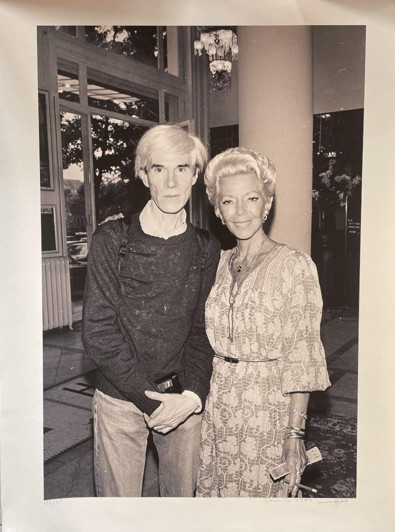 Rencontre entre l’icône de la pop culture et l’actrice Lana Turner lors du festival du film de Deauville en 1981, prise par le photographe Philippe Ledru qui couvrait l’évènement ainsi que le festival de Cannes dans les années 80. A noter que le cliché coïncide au jour où Andy Warhol immortalisa Lana Turner, vêtue de la même robe d’apparat, avec son appareil Leica que l’on aperçoit entre ses mains.