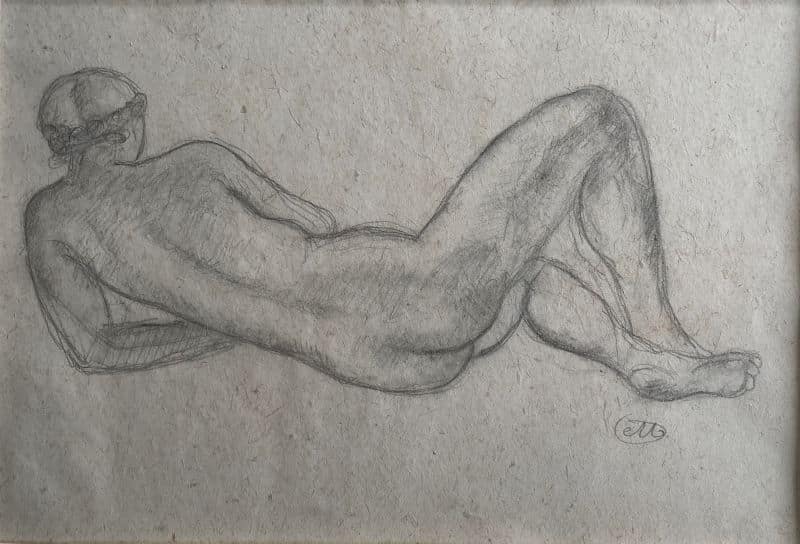Dessin au crayon noir et à l’estompe signé du monogramme en bas à droite, 22,5 x 34 cm.