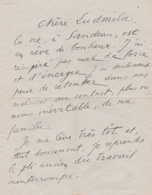 Lettre autographe signée à sa chère Ludmila. Sandeau; 2 pages in-4°.