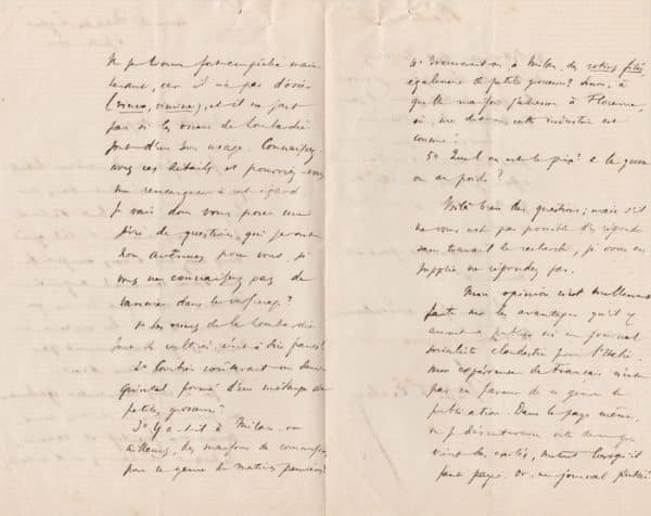 Très belle lettre sur les idées humanistes d’Elisée Reclus : « Dans ma dernière lettre je ne vous avais pas parlé du Congrès de Paris, car je n’espère pas grand-chose de ces petites « parlottes » bourgeoises où quelques avocats trouvent moyen d’utiliser à leur plus grande gloire leurs voyages de villégiature. L’idée me semble vraiment bizarre de vouloir confédérer l’Europe par la paix et par la liberté, alors qu’on ne veut pas donner satisfaction aux intérêts du plus grand nombre ! Comment arriver à niveler les frontières si l’on ne commence pas par faire parti de l’Internationale ? Contre les rois et les quatre ou cinq millions d’hommes armés, il faut autre chose que des discours. La persuasion n’entrera dans les esprits des maîtres que lorsqu’ils seront vaincus par la dure fatalité des choses, par le concours de tous ceux qui veulent la justice, non partielle, mais entière, égale pour tous et pour toutes. Vous comprenez donc pourquoi ces messieurs du congrès de la paix ne me disent rien qui vaille. Néanmoins je leur serai fort reconnaissant qu’ils amènent ici quelques bons amis ? Si leur venue devait, par exemple, vous décider à nous pousser une petite visite. Je crains de ne pas vous avoir remercié des renseignements que vous m’avez donnés sur les osiers de la Lombardie. Si je ne l’ai pas fait, excusez-moi et mettez le comble à votre complaisance en me disant si vous connaissez quelque négociant qui trafique en osiers. Un autre service : Quand la bibliothèque de Brême est elle fermée pour cause de vacances ? J’ai été sur le point d’aller à Milan avec ma femme, mais la crainte de trouver cet établissement fermé nous a fait retarder notre voyage. Peut-être qu’avec votre appui, je pourrais mettre la main sur quelque savant qui me fera autoriser à emprunter des livres à cette bibliothèque. Ce serait un précieux avantage pour moi …»