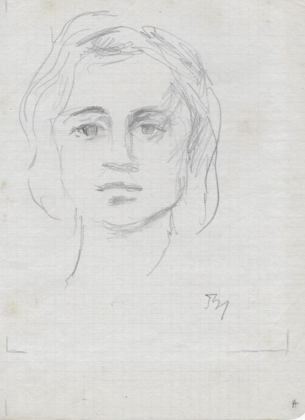 Crayon sur papier quadrillé signé du monogramme en bas à droite « Bs. », 22 x 16 cm.