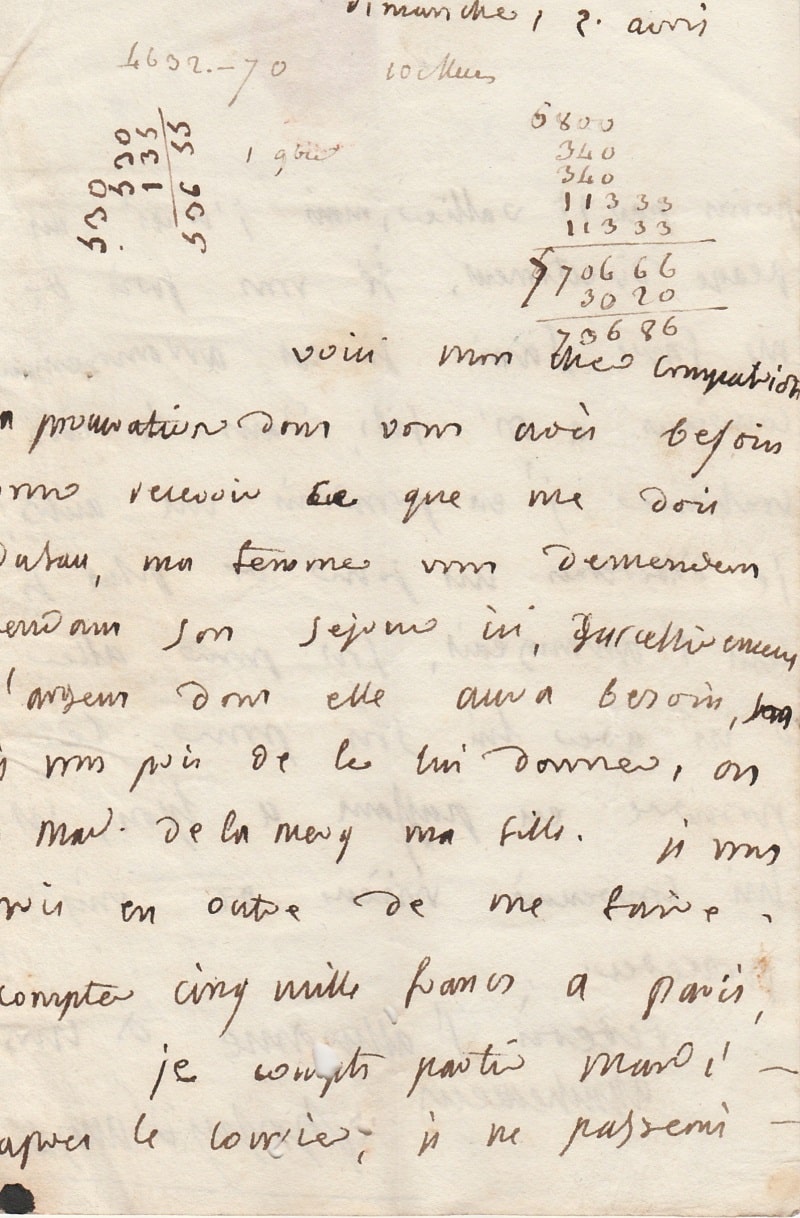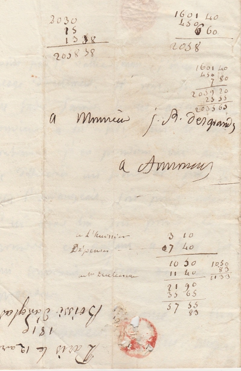 Lettre autographe signée à Monsieur Jean-Baptiste Desgrand. Paris 12 avril 1815 ; 2 pages in-8°, adresse en quatrième page.