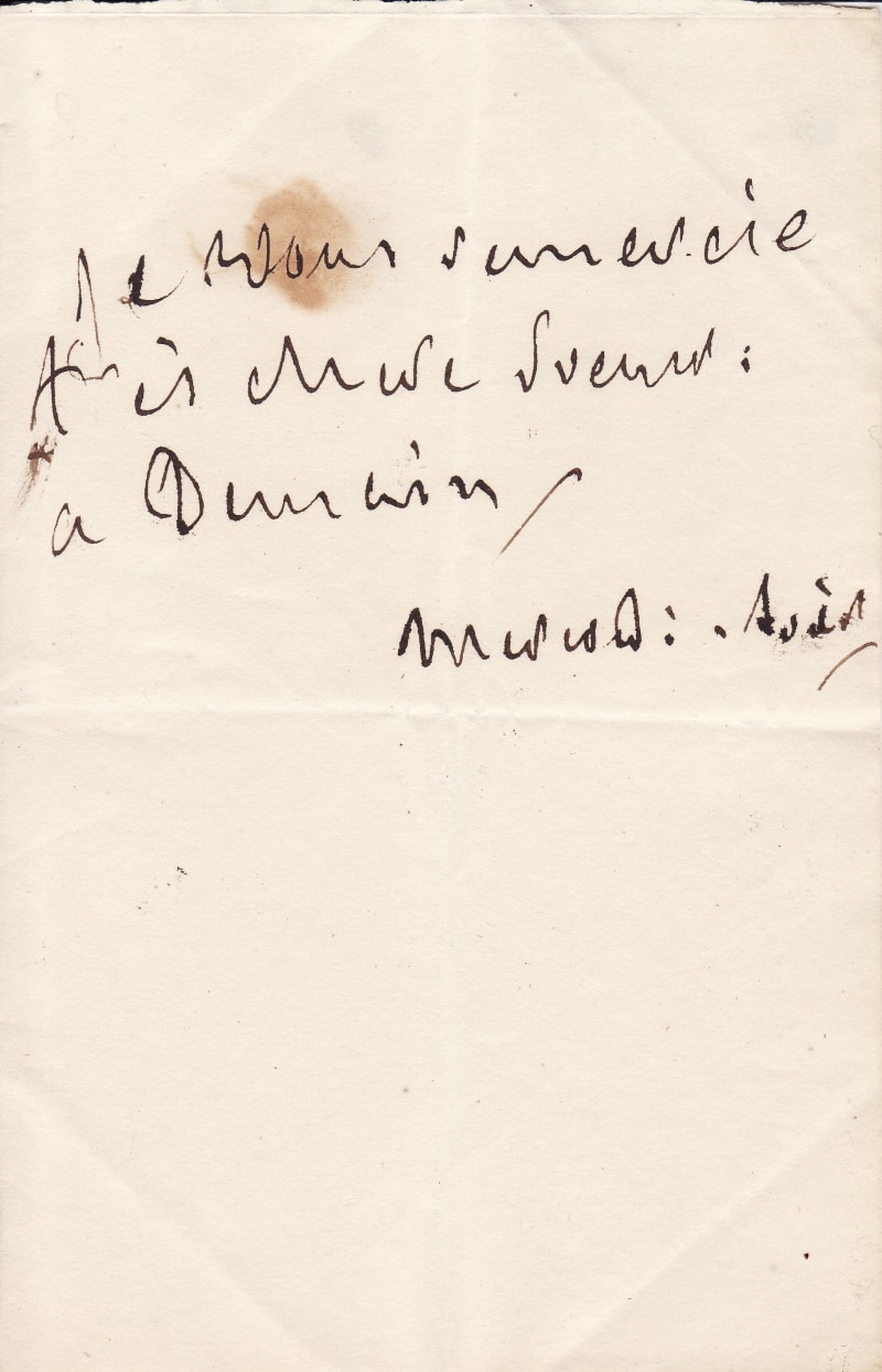 Ensemble de 5 billets autographes signées à son amie la duchesse de Duras. S.l.n.d.; 5 pages in-12°,cachets de cire et nom du destinataire au dos.