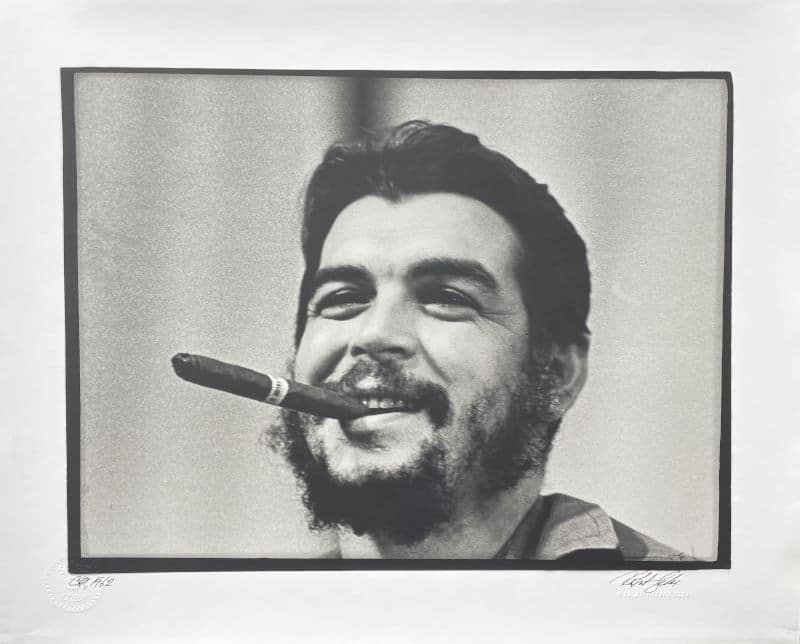 Superbe portrait du Ché, le visage souriant avec son éternel cigare aux lèvres.