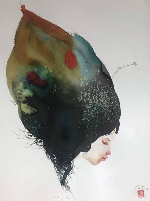 Peinture à l’eau sur papier signée et datée au crayon à papier avec cachet de l’artiste en bas à droite, 61×45,5 cm.