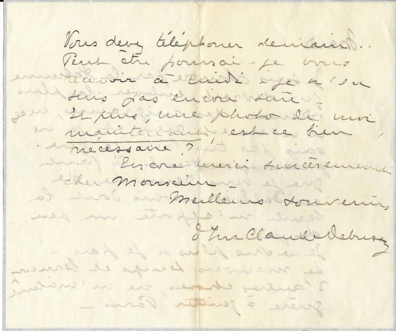 [Claude DEBUSSY] – Lettre autographe signée
