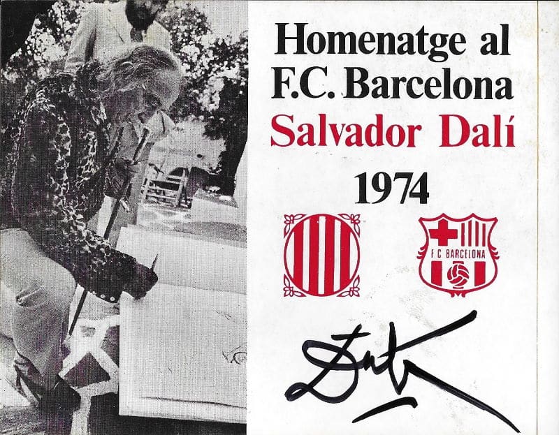 Ticket du F.C. Barcelone en hommage à Salvador Dali daté de 1974 signé au feutre par Dali, 8,8 x 11,5 cm.