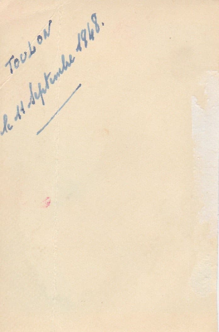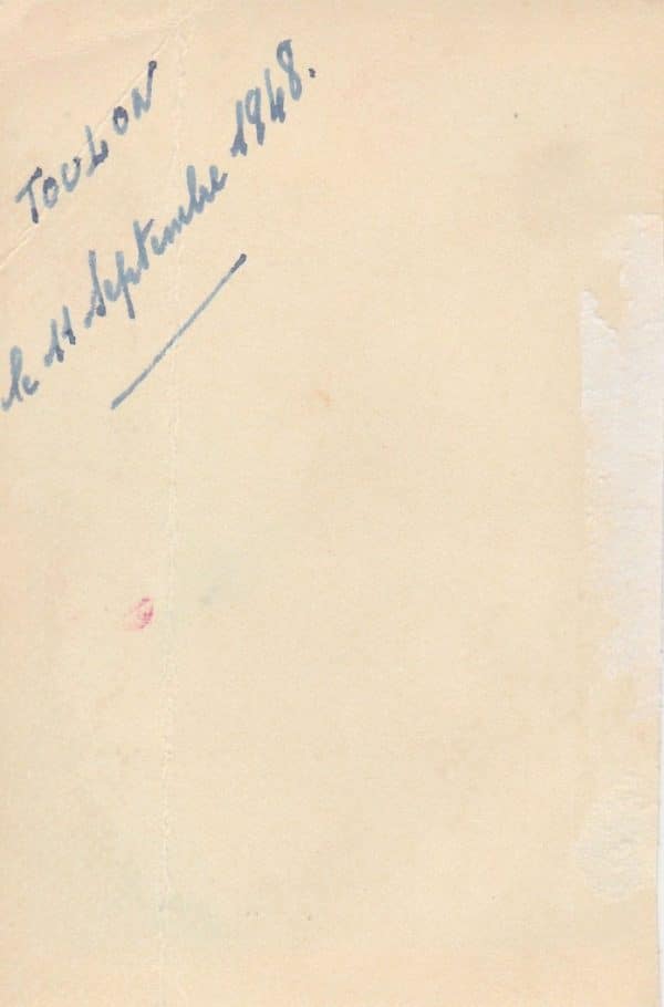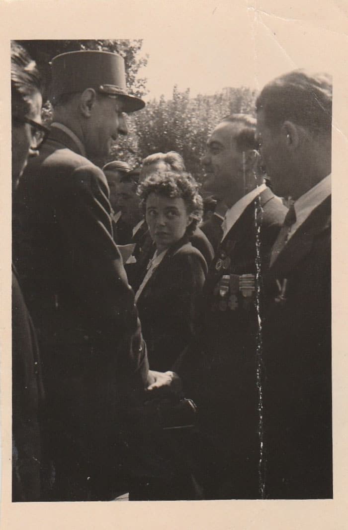 -Photographie d’époque du général de Gaulle saluant un ancien combattant à Toulon le 11 septembre 1948 (mention manuscrite au dos)