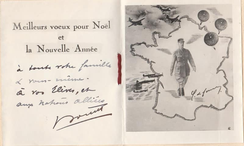 Vœux d’un compagnon adressé à un professeur : « Meilleurs vœux pour Noël et la Nouvelle Année à toute votre famille & vous-même – à vos élèves, et aux Nations alliées »