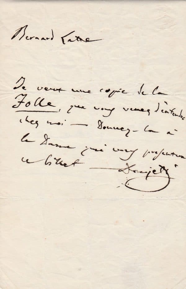 DONIZETTI Gaetano – Lettre autographe signée