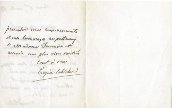 Labiche accepte avec plaisir l’invitation qui lui a été faite : « J’accepte de grand cœur votre invitation pour dimanche 7 janvier. Vous me dites que la compagnie sera bonne, je n’en doute pas. Mais pour moi, le principal attrait sera de me trouver dans la vôtre… »