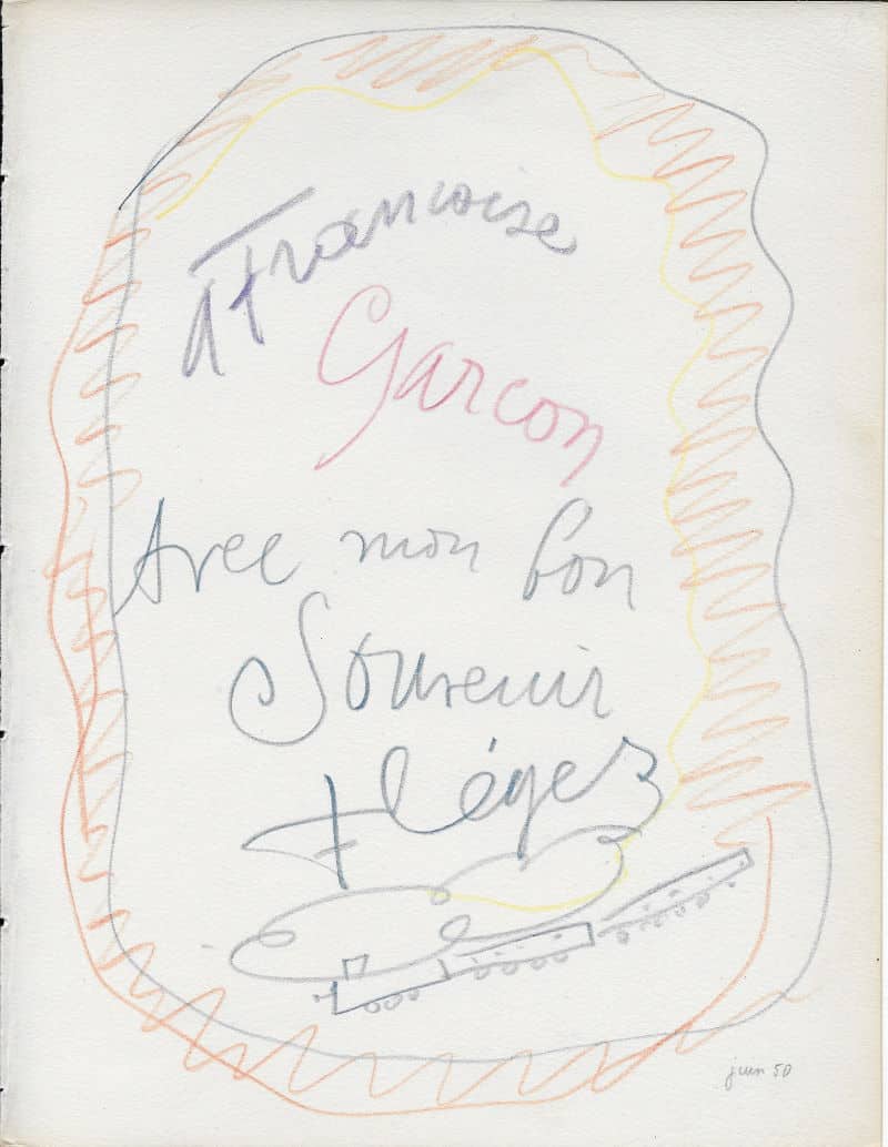 Feuille provenant de l’album amicorum de Françoise Garçon – Lhermitte, fille de l’avocat Maurice Garçon et épouse du professeur François Lhermitte.