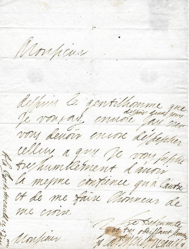 Le moraliste envoie un messager pendant la Fronde : « Despuis le gentilhomme que je vous ay envoie despuis deux jours jay creu vous devoir encore despescher celluy a quy je vous suplie tres humblement d’avoir la mesme confience qu’a l’autre … ».