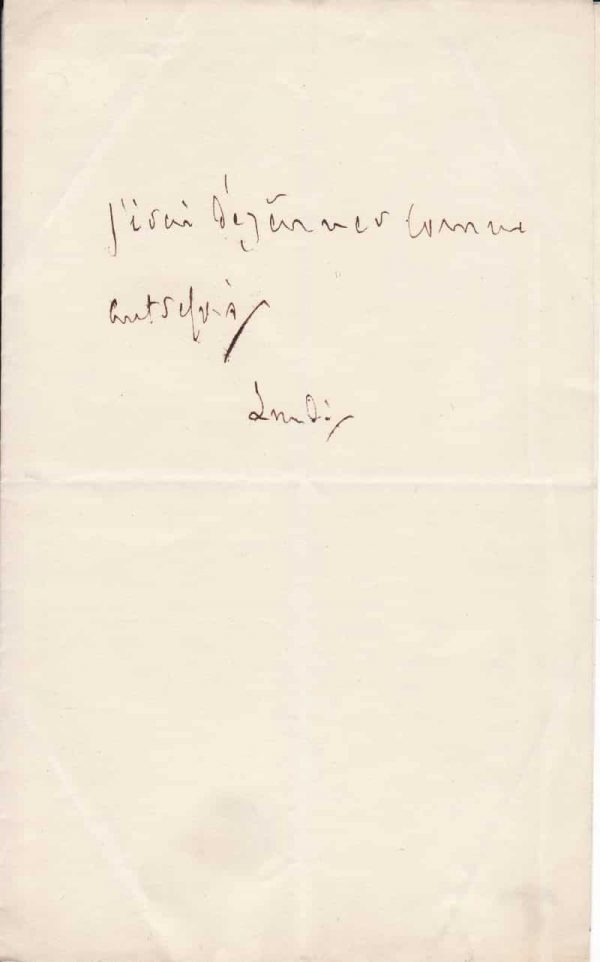 2/ Billet autographe à la duchesse de Duras. Lundi ; 1/3 page in-12°