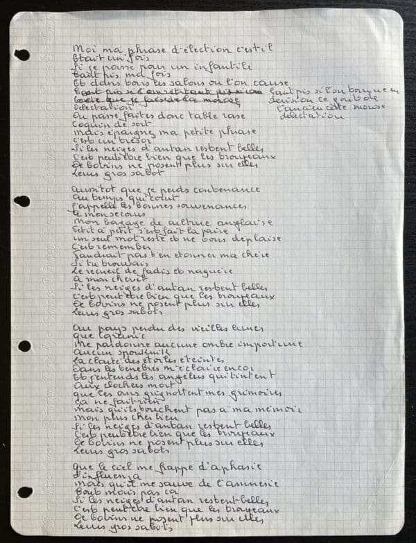 Manuscrit autographe de la chanson « Le passéiste ». S.l.n.d. ; 1 page in-folio sur papier quadrillé comportant des trous de classeur en marge sans atteinte au texte