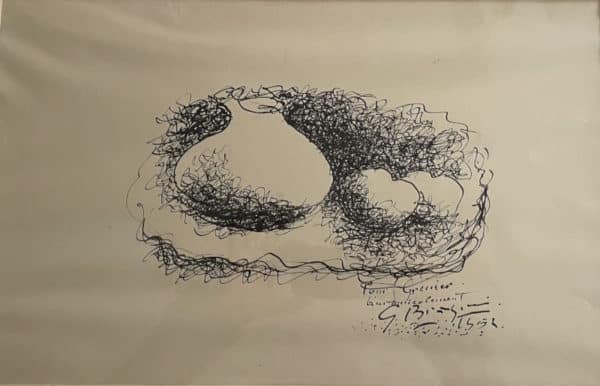Dessin à l’encre de chine sur papier, 30,5 x 48,5 cm. Signé, daté (1952) et dédicacé (« Pour Grenier… ») sous la composition.