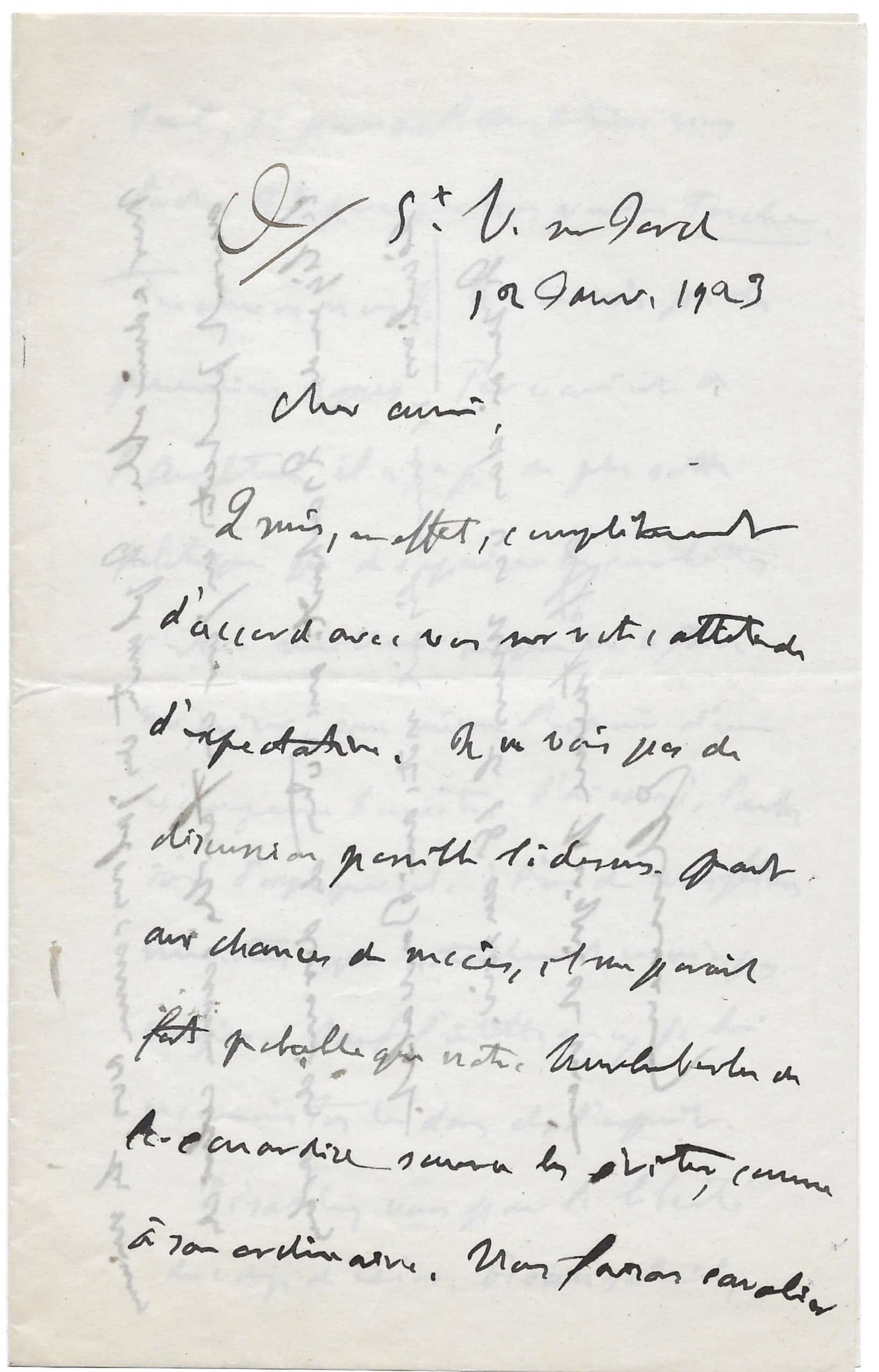 Lettre autographe signée à André Tardieu – St-Vincent sur Jard, 12 janvier 1923. 3 pages in-8° sur un double feuillet. Pliures liées à l’envoi