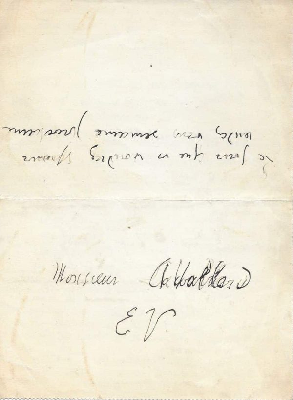 Lettre autographe signée « GR » au marchand d’art Ambroise VOLLARD ; s.l.n.d. , 1 page ¼ in-12°, adresse au dos.