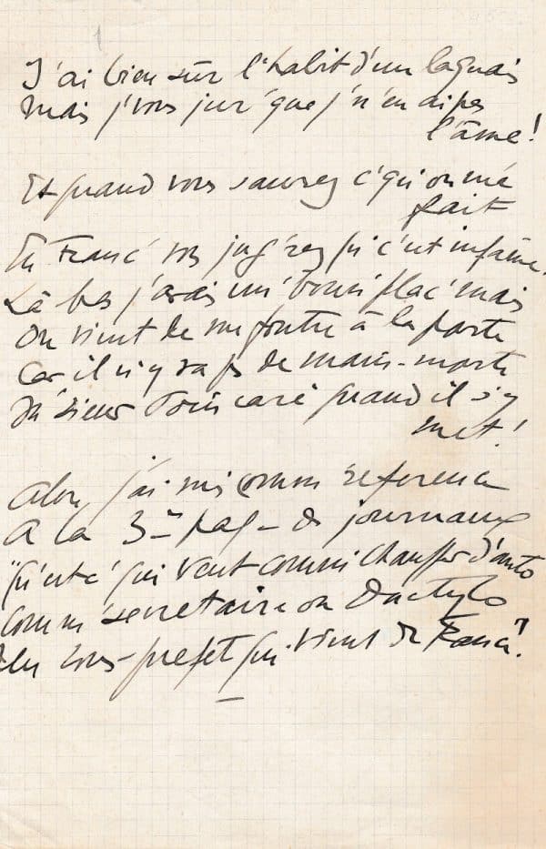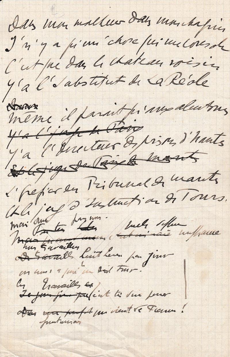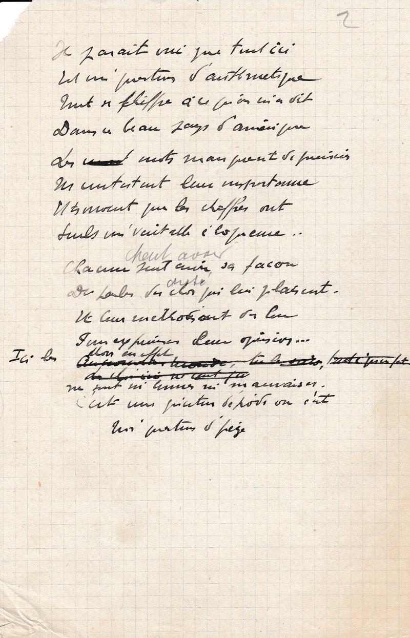 Poème autographe. S.l.n.d. (circa 1930) ; 3 pages 1/3 in-8° avec ratures et corrections.
