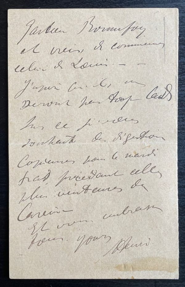 Lettre autographe signée « Henri » à sa mère Adèle Zoë Tapié de Céleyran. (Paris, février 1891) ; 4 pages in-8°. Une fente restaurée, trace d’onglet n’affectant pas la lecture.