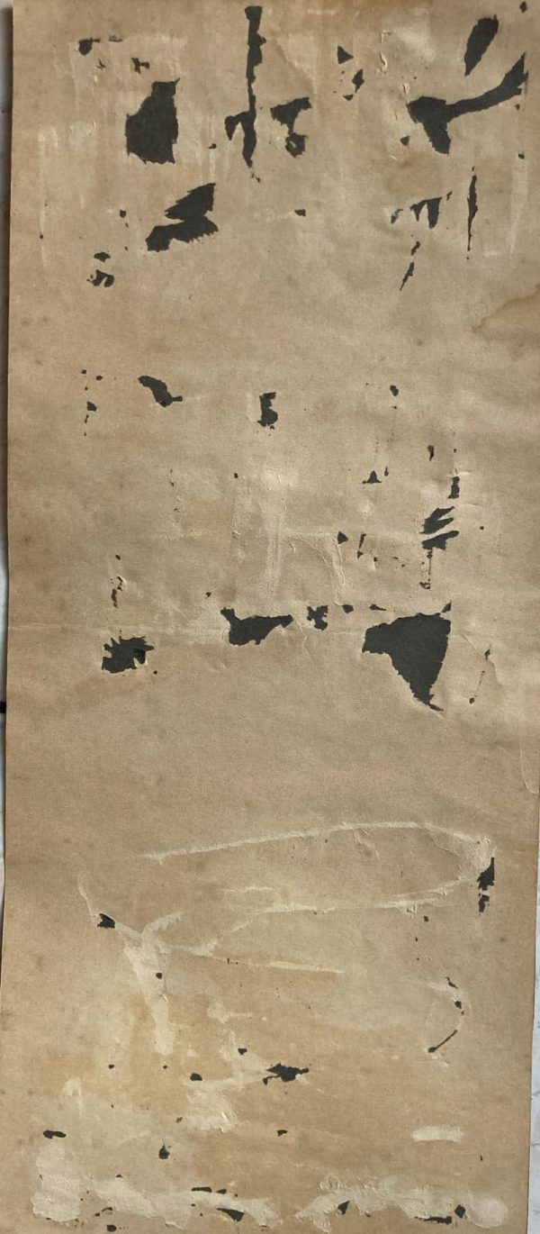 Présente quelques rousseurs et de petites cloques par endroit. Traces de colle et bribes de papier collées au verso mais qui sont invisibles au recto.