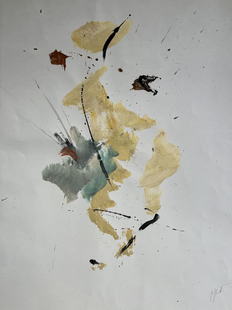 Belle composition abstraite dans le mouvement de l’abstraction lyrique lancé dans les années 1920 par Kandinsky.