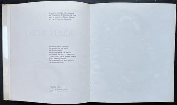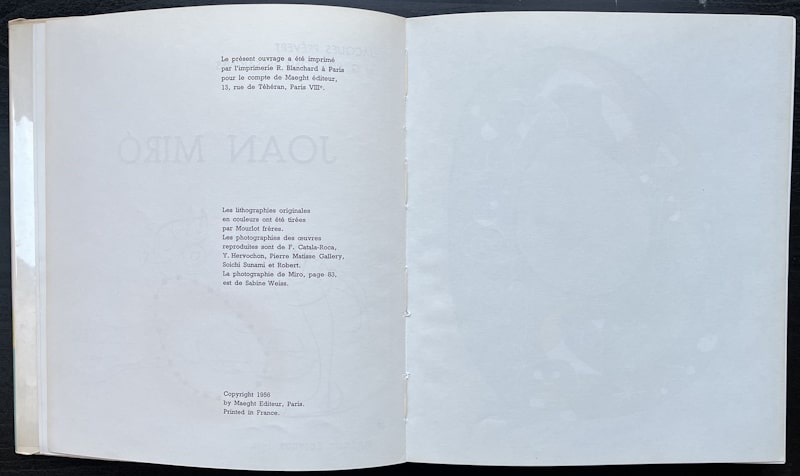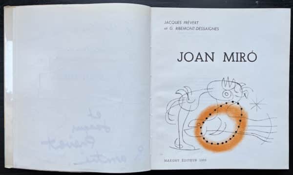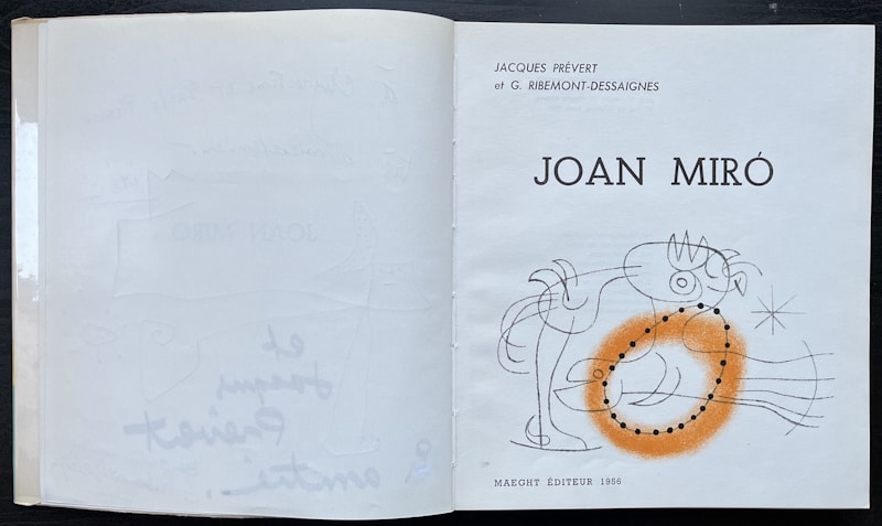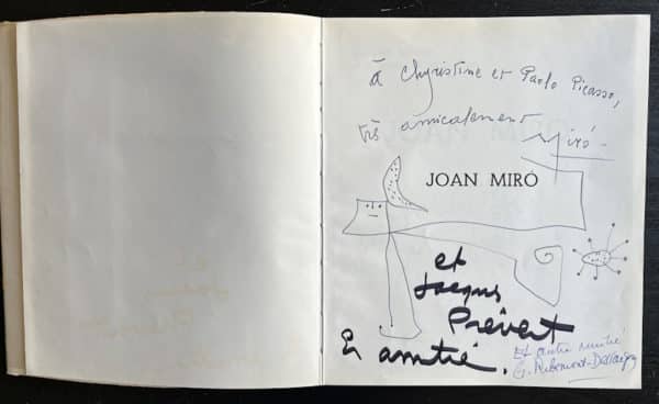 Dédicaces réalisées sur la page de garde du livre « Joan Miró » édité par la galerie Meight en 1956.