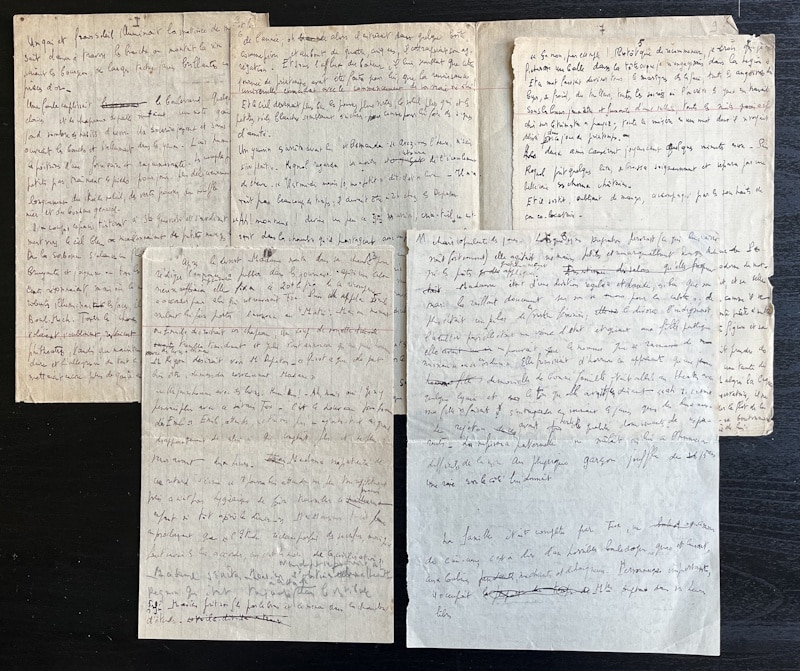 Manuscrit autographe. (Circa 1920) ; 12 pages in-8° sur papier scolaire.