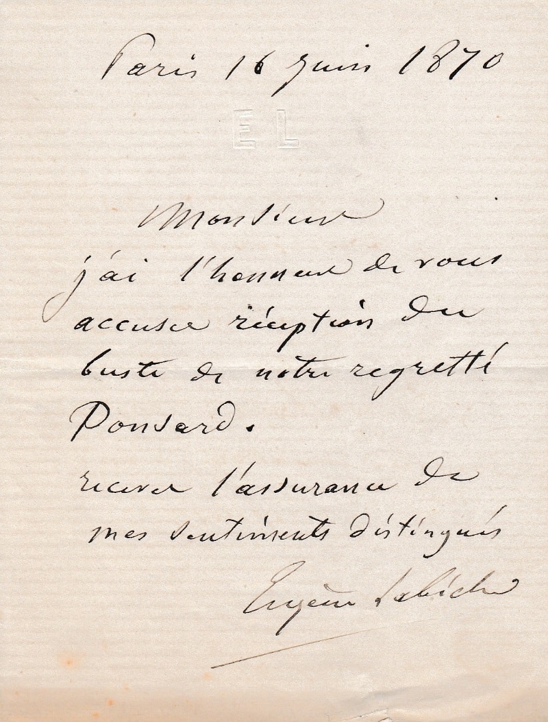 Labiche a commandé le buste du sculpteur François Ponsard mort en 1867 : « J’ai l’honneur de vous accuser réception du buste de notre regretté Ponsard… »