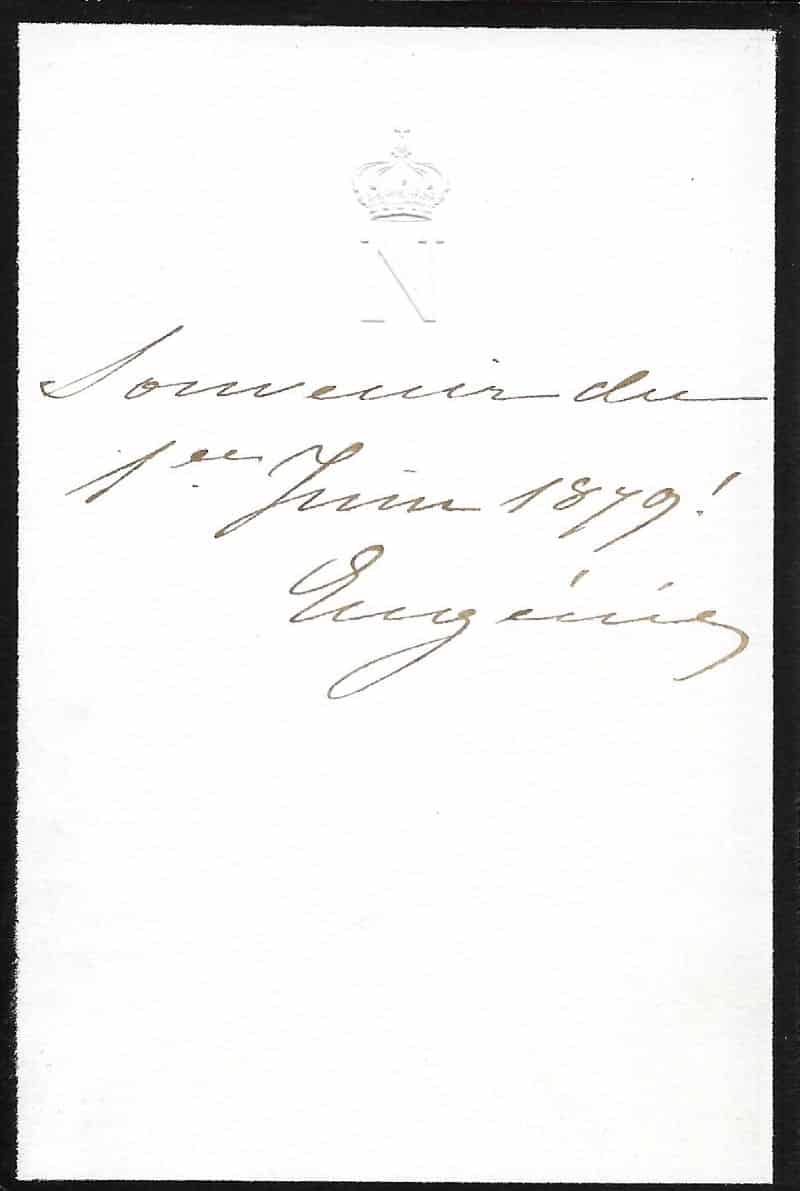 Billet autographe signé. S.l.n.d. ; 1 page in-16° sur papier de deuil au monogramme du prince impérial accompagné d’une carte de deuil à l’effigie du Prince impérial