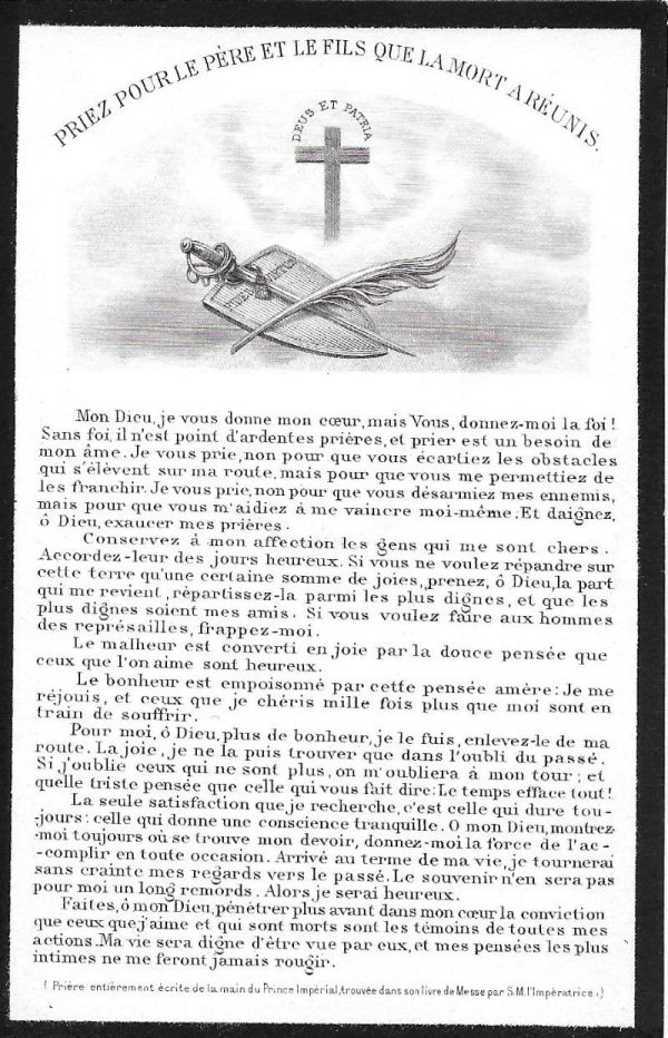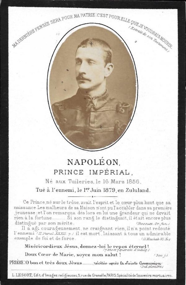 Le 1er juin 1879 le prince impérial se fait tuer au combat en Afrique du Sud : « Souvenir du 1er juin 1879 ! »