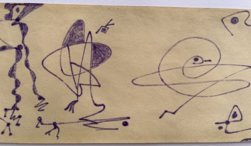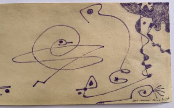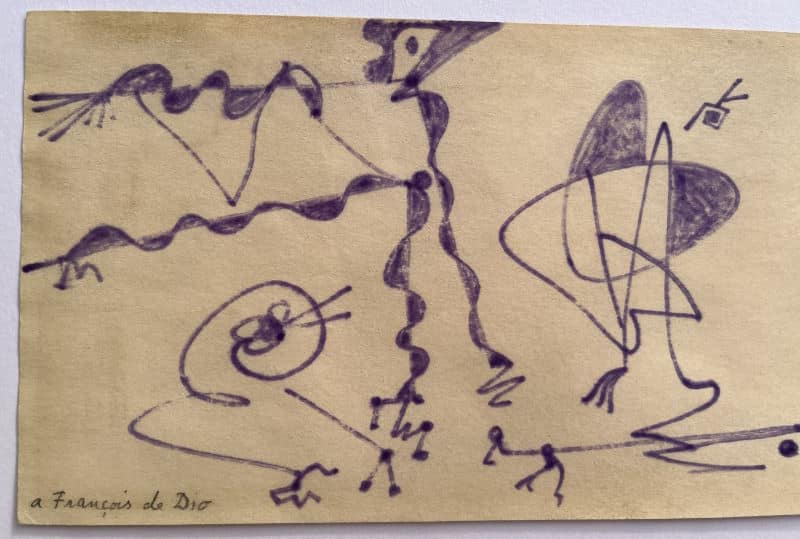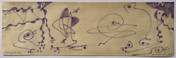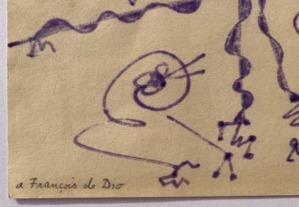 Dessin au feutre mauve, 11,1 x 35,3 cm. Signé et dédicacé (« à François di Dio, son ami Max Ernst ») au crayon à papier en bas à droite et à gauche.