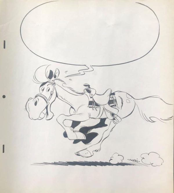 Superbe illustration à l’encre de chine de Jolly Jumper, compagnon alter-ego de Lucky Luke.