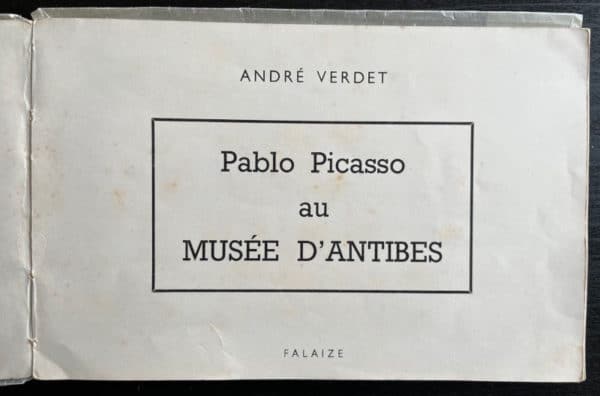Livret des œuvres du maître espagnol exposées au musée d’Antibes par le poète et écrivain André Verdet. Intérieur richement illustré de photos de Marianne Greenwood des œuvres de Picasso dont certaines ne sont plus présentes au musée depuis. Edition Falaize imprimé le 18 septembre 1951.