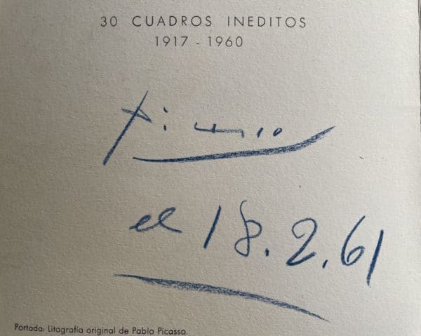 Plaquette de l’exposition des 30 dernières œuvres inédites de Picasso couvrant les années 1917 à 1960 à la Sala Gaspar de Barcelone.