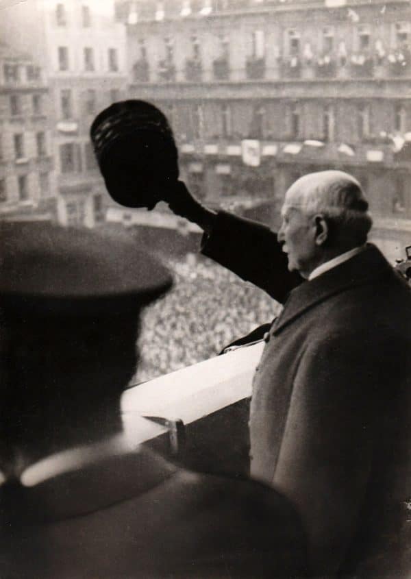 Cliché du Maréchal Pétain, alors chef d’état sous l’occupation allemande, au balcon de la préfecture à Marseille.
