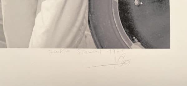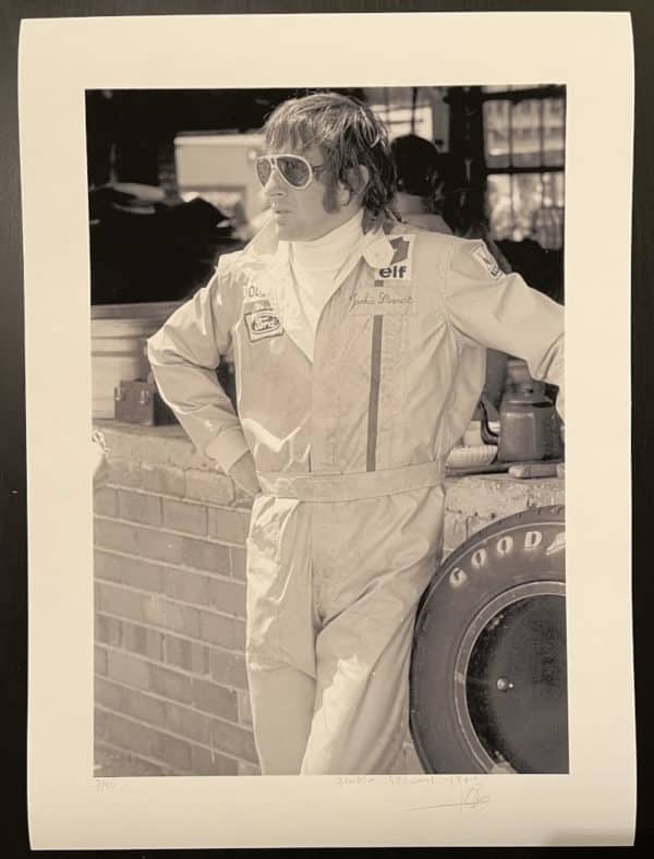 Superbe portrait, jamais connu à ce jour, du mythique Jackie Stewart daté de 1971 sur le circuit de Formule 1 du Grand Prix d’Afrique du Sud.