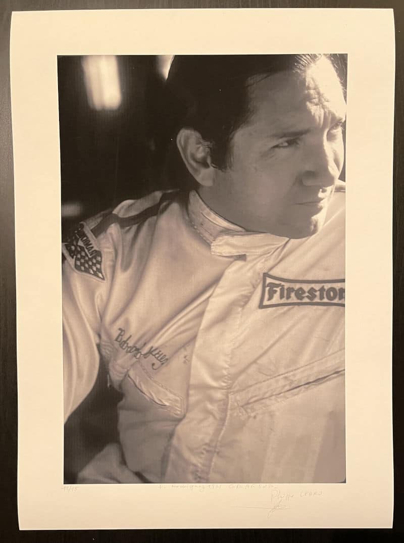 Superbe portrait, jamais connu à ce jour, du champion mexicain daté de 1971 sur le circuit de Formule 1 du Grand Prix d’Afrique du Sud.