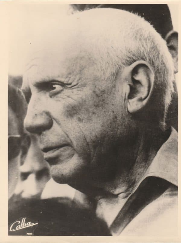 Mention manuscrite du photographe au dos : « Picasso à Vallauris juillet 1957 »