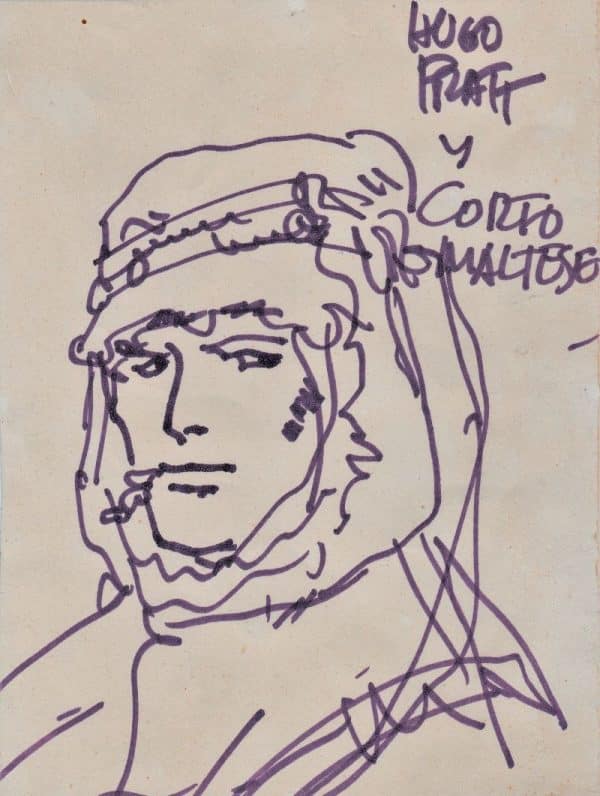 Beau et fort rare dessin du célèbre aventurier vêtu d’un turban d’homme du désert autour de la tête.