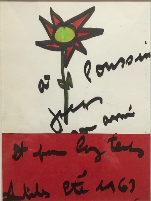 Feutres de couleur sur papier, 23 x 17 cm. Signé et dédicacé : « à poussin Jacques son ami & pour longtemps. Antibes été 1963 »