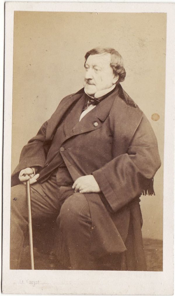 Portrait du grand compositeur italien par Etienne CARJAT, assis dans un fauteuil une canne à la main, années 50