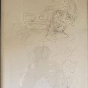 L’artiste surréaliste a réalisé au feutre noir, d’un seul jet, son célèbre Don Quichotte, signé deux fois et accompagné de la couronne du roi Dali, daté (1967).