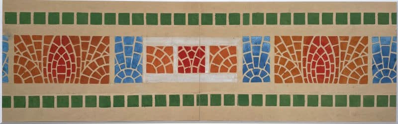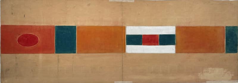 Gouache sur papier signée au recto en bas à droite, 30 x 85 cm. Au verso une autre composition à la gouache