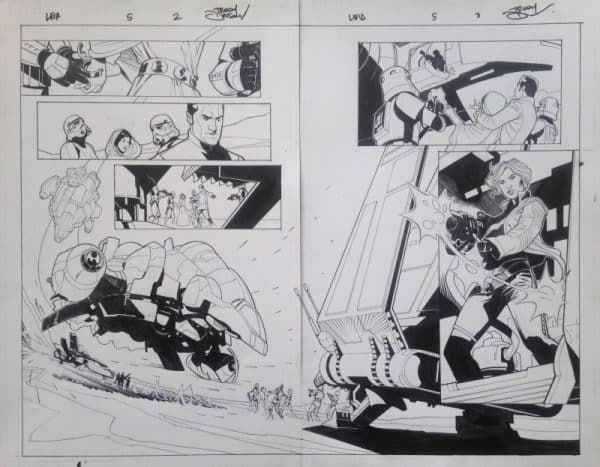 Double planche originale à l’encre de chine sur papier, 46 x 30,5 cm, signé deux fois