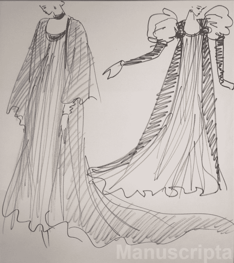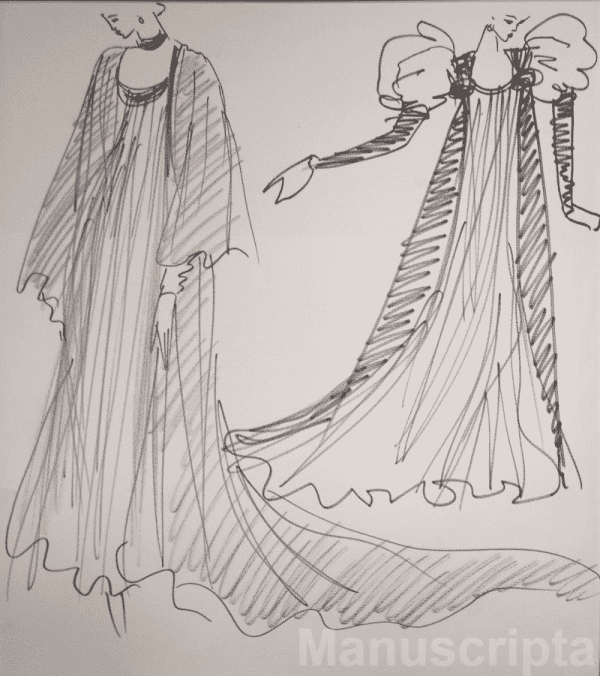 Provient du carnet de croquis des projets des robes d’Edwige Feuillère dans « Cher Menteur »